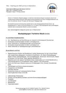 Stellenanzeige Musikpädagoge-Fachlehrer Musik 2025